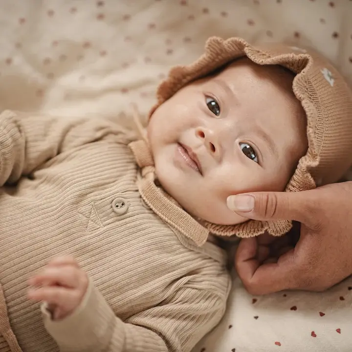 Knitted Bonnet - Nude with Flowers